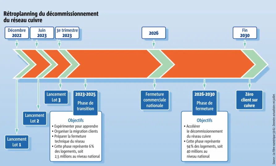• Le réseau cuivre (ADSL, RTC) est en cours de fermeture : 162 communes ont déjà basculé en 2025, et la généralisation est prévue d’ici 2030.