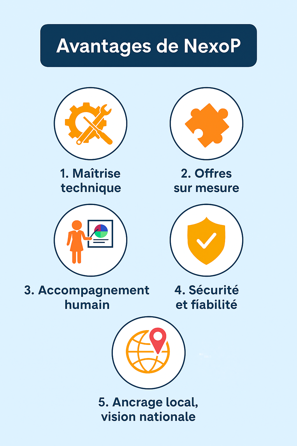 En plus d’exploiter les réseaux, NexoP commercialise directement ses offres aux entreprises. Nous ne sommes pas un simple revendeur : nous maîtrisons la chaîne technique et commerciale, ce qui nous permet d’être réactifs, transparents et humains.