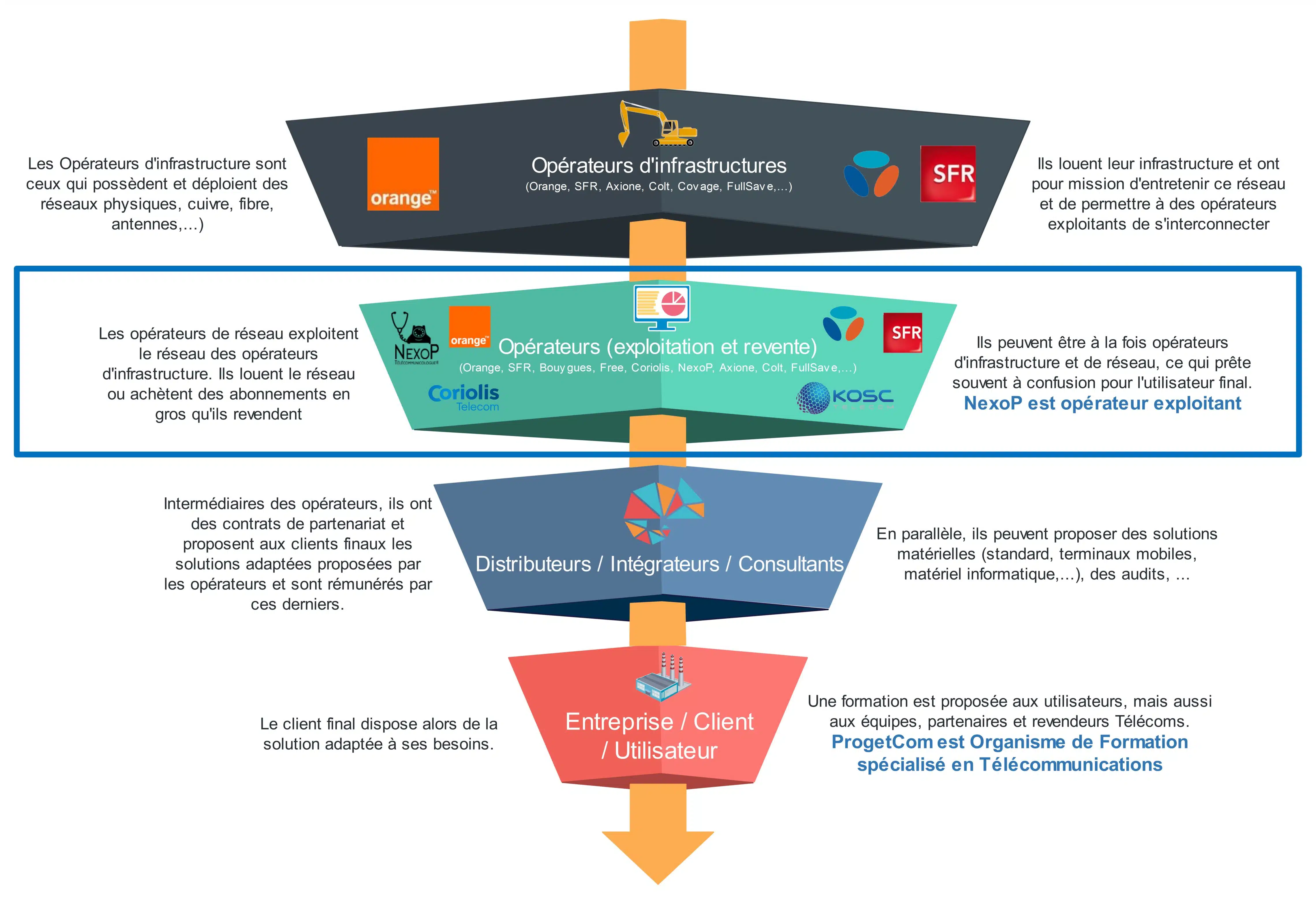 Dans le secteur des télécoms, les rôles sont souvent confus pour les entreprises. Qui construit les réseaux ? Qui les exploite ? Qui vous vend votre abonnement ? Et surtout, pourquoi choisir un opérateur comme NexoP plutôt qu’un grand nom national ? Cet article vous guide à travers les trois grandes familles d’acteurs, avec des illustrations claires et des sources fiables.